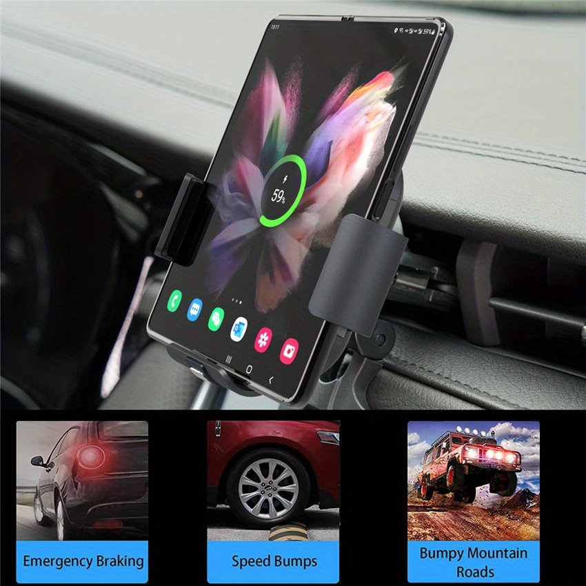 Fast wireless Car Charger & Mount: fast Wireless Car Charger combines air vent phone holder and wireless car charger into one. This fast wireless phone charger with built-in intelligent chip can protect your phone from overcharge, over current, short circuit, over high temperature, etc.