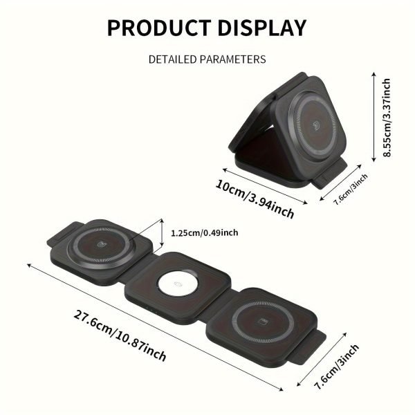3 In 1 Wireless Charger Foldable Magnetic Charger Compatible With IPhone 15/14/13/12/11/X/XS/8 Series, 3 In 1 Charging Pad For Airpods 2/3/Pro, IWatch 8/7/6/SE/5/4/3/2 (without Adapter)