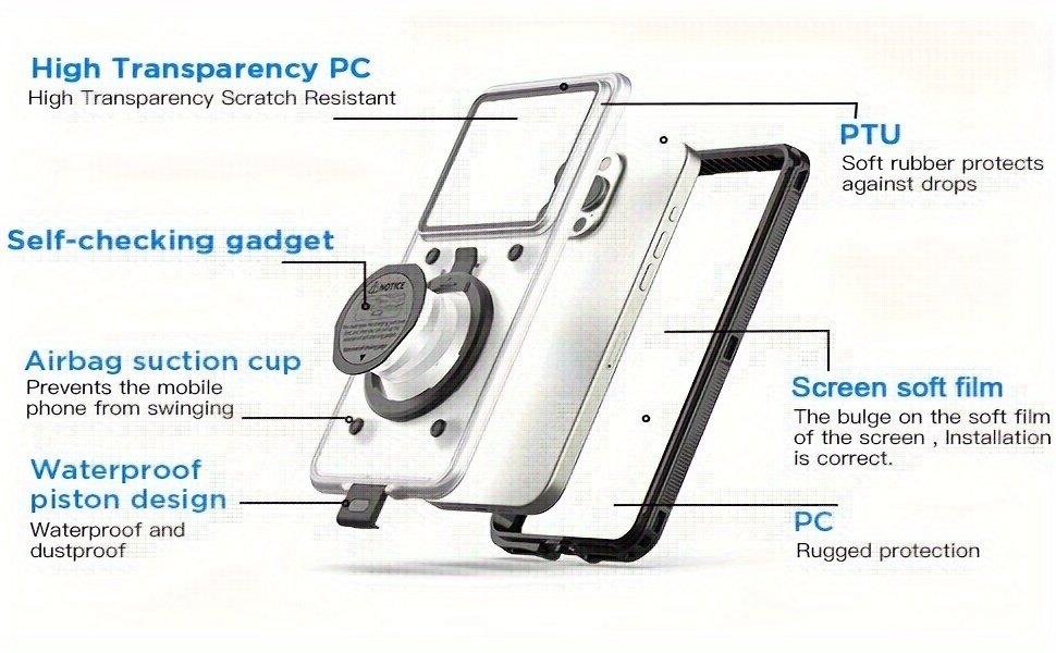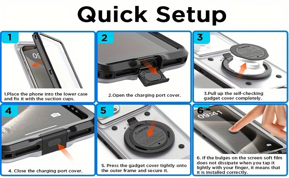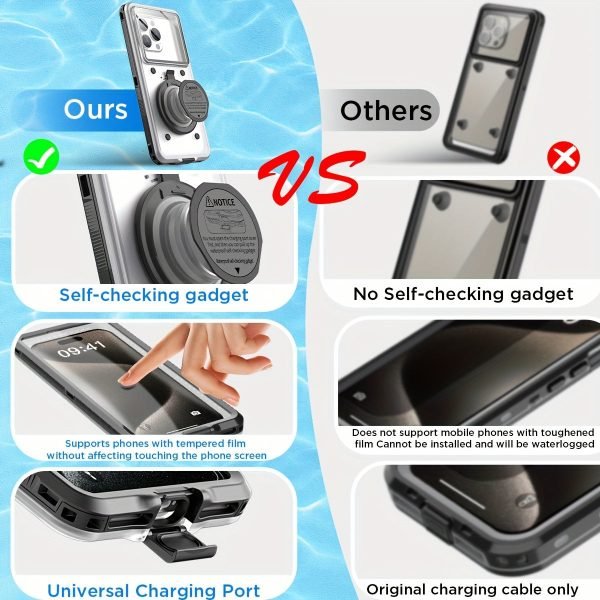 With Self-Check Waterproof Function – Our waterproof case has a Self-Check waterproof function during use. According to the usage steps, if the bulges on the screen soft film does not dissipate when you tap it lightly with your finger, it proves that it fully sealed and waterproof. Other waterproof cases cannot confirm whether they are installed correctly, which may lead to unexpected situations during use.