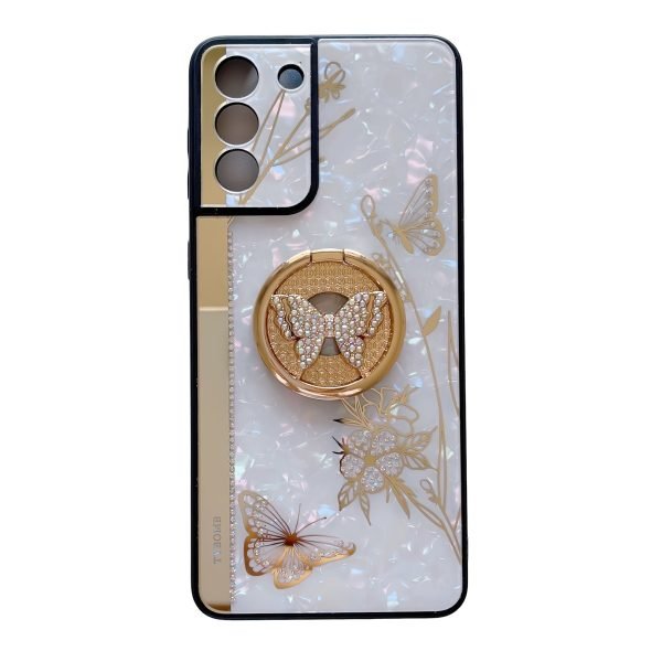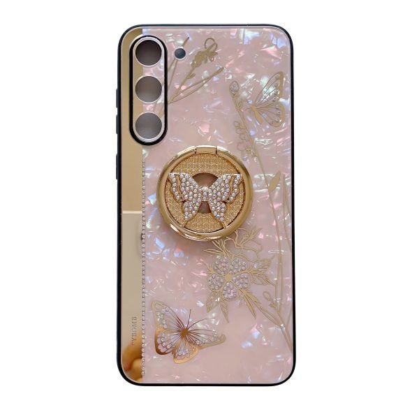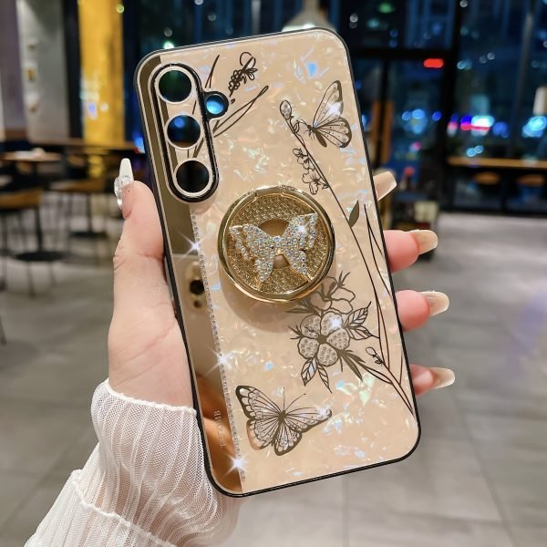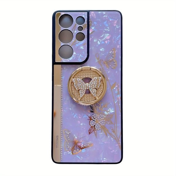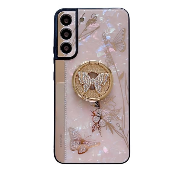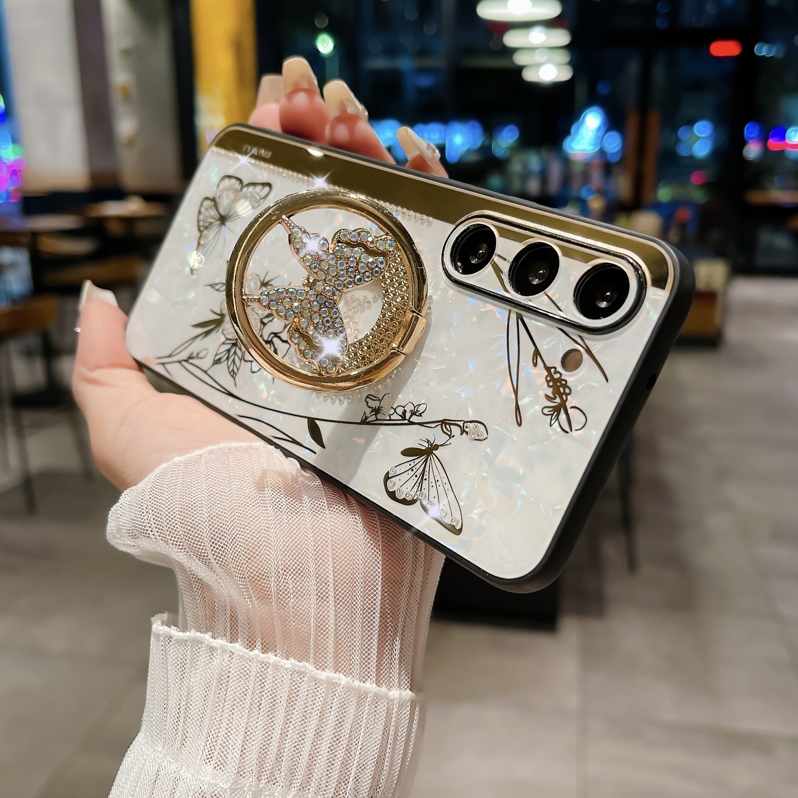 For Samsung Galaxy S23 FE/S23+/S23/S22+/S22/S21 Ultra/S21+/S21/A52 Phone Case Ladies Girl, Luxury Cute Sparkling Rhinestone Butterfly Flower Design With Ring Stand, Electroplated Glitter Girl Hard Case
